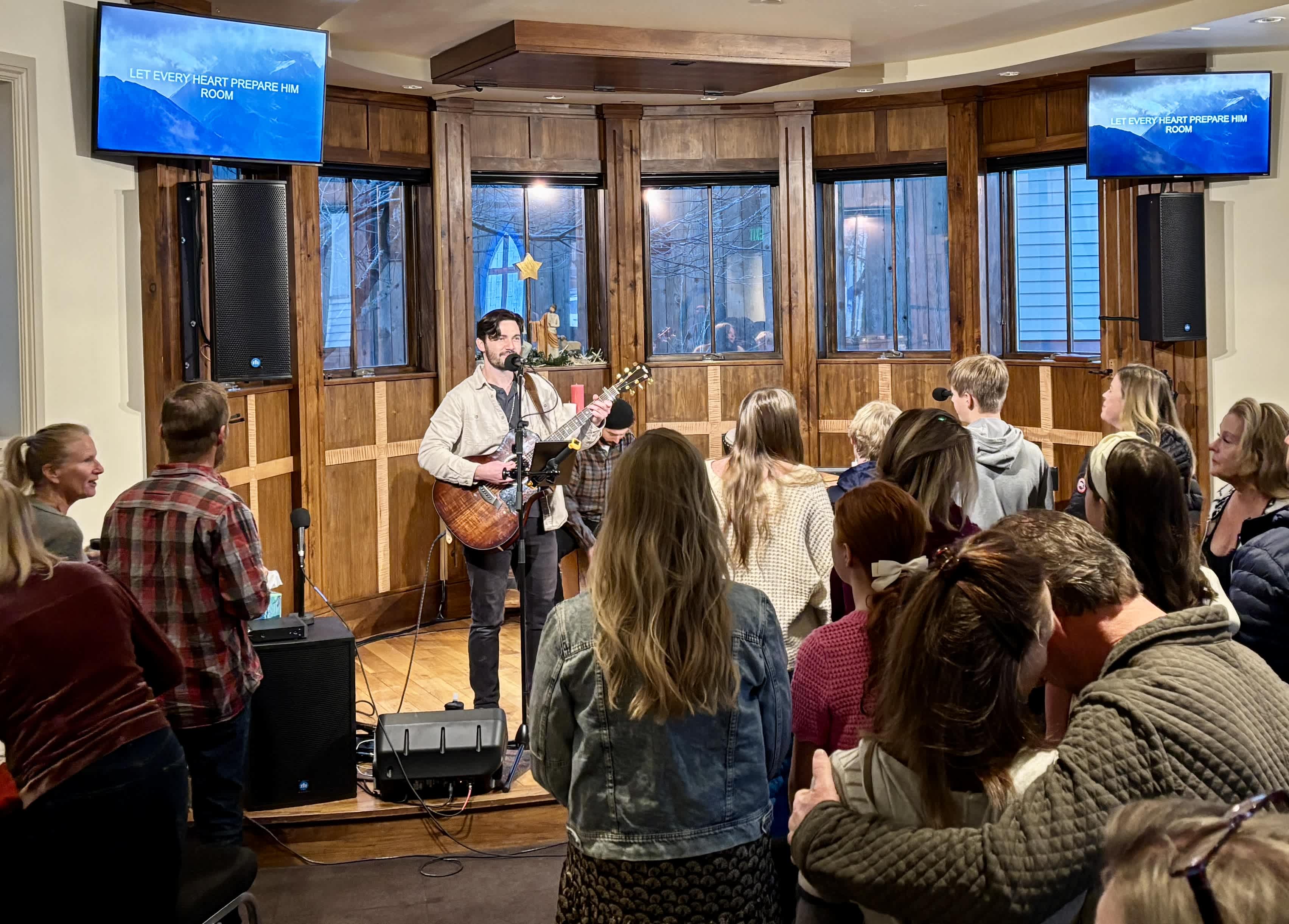 Our services are about an hour long and consist of a blend of worshiping God through singing and time in God’s Word. Our church is made up of people who have come from a variety of denominations, worship styles and church backgrounds. Come as you are, even if that means dressed to ski or hike!